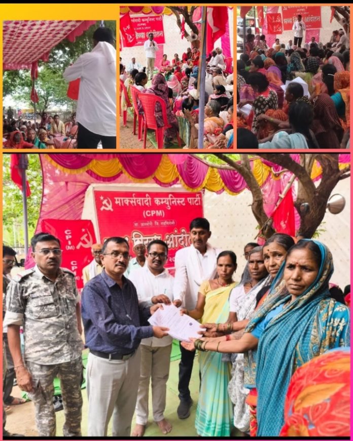 आंदोलनात मारोती गुरुनूले, मनसेच्या विभा बोबाटे, ज्योती सहारे, माकपचे तालुका सचिव काॅ. राजू सातपूते, काॅ. विठ्ठल प्रधान, माणिक कुर्वे, यशवंत नारनवरे, अर्चना मारकवार, मायाताई सिंदी, भगवान राऊत, किसन राऊत, अंजना कुंभलकर, सोनाली आचकुलवार यांच्यासह शेकडो निराधार महिला व वयोवृध्द शेतकरी बहुसंख्येने सहभागी झाले होते.