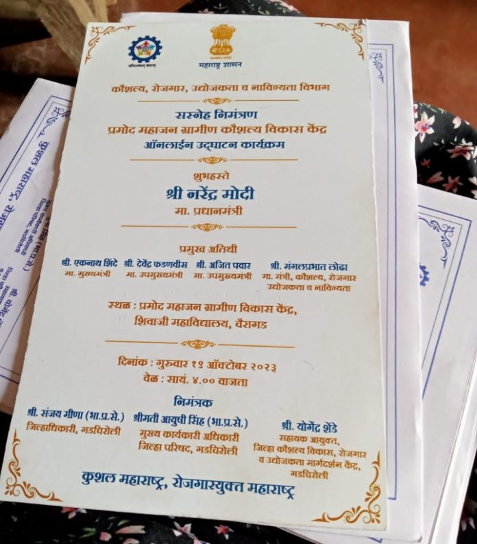 आरमोरी ( जिल्हा गडचिरोली): तालुक्यातील वैरागड येथील शिवाजी महाविद्यालयात पंतप्रधान नरेंद्र मोदी यांच्या शुभहस्ते दूरदृश्य प्रणालीद्वारे आज दिनांक १९आॅक्टोंबर २०२३रोजी सांयकाळी ४.३०वाजता प्रमोद महाजन ग्रामीण कौशल्य विकास केंद्राचे उद्घाटन होणार आहे.