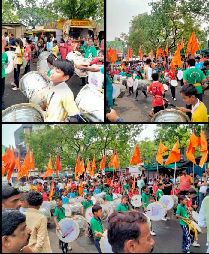 १५०मुलांचे पथकाने मेडिकल चौक नागपूर येथे बॅंड, ढोल, ताशा यांचे लयबद्ध वादन करून गुढीपाडवा व मराठी नववर्षाचे जल्लोषात स्वागत केले तो अविस्मरणीय क्षण…टिपलेला आहे;विधायक दीपस्तंभ न्यूज नेटवर्क चे संपादक विलास गोंदोळे यांनी.भारतातील वाद्यवृंद क्षेत्रातील लहान मुलांचे हे प्रथमच सर्वात मोठे पथक असल्याचे प्रत्यक्षदर्शींनी सांगितले आहे.हे विशेष!