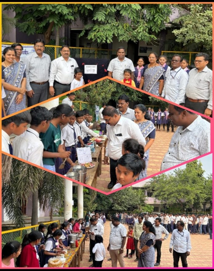 शाळेचे मुख्याध्यापक अद्दलवार व शिक्षक यांच्या मार्गदर्शनाखाली विद्यार्थ्यांनी विविध स्वादिष्ट व्यंजन तयार करून विक्रीसाठी मांडलेले होते.